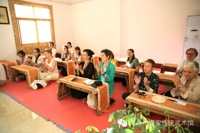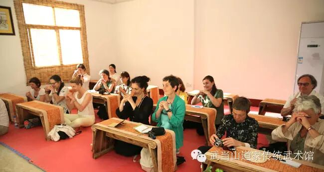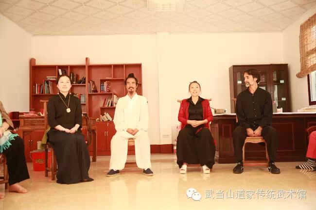 5月2日 下午,一群身着中式服装的国外友人团队抵达我馆进行文化交流活动,从他们装束可以看出对中国文化的喜爱与认同,原来他们是法国文化交流团队,此次专程来此 拜访袁道长。适逢袁师父五一亲授辟谷班,应大家的热情与好奇,师父给大家分析现今世界普遍的健康问题,阐释养生的重要性,期间涉及辟谷、中医、修行、自然 环境等诸多话题,国外友人也不时提出各种疑惑,经过师父的解答都频频称赞。总结整体的谈话,师父总结自己前十多年侧重臻于功夫,而后二十年则为潜心修行, 而修行最重要的是持续以人为本、崇尚自然、热爱生命。