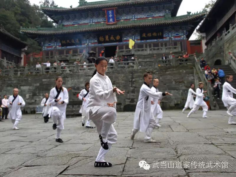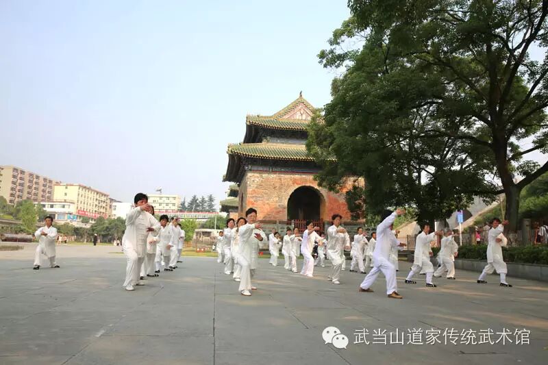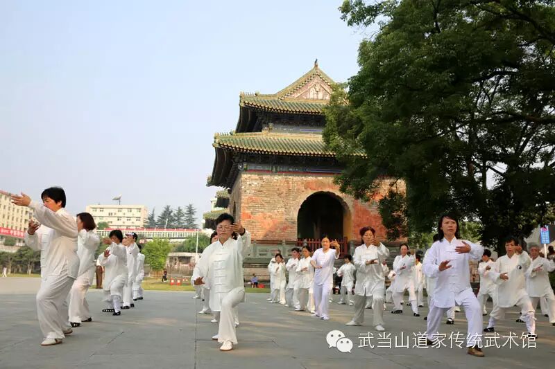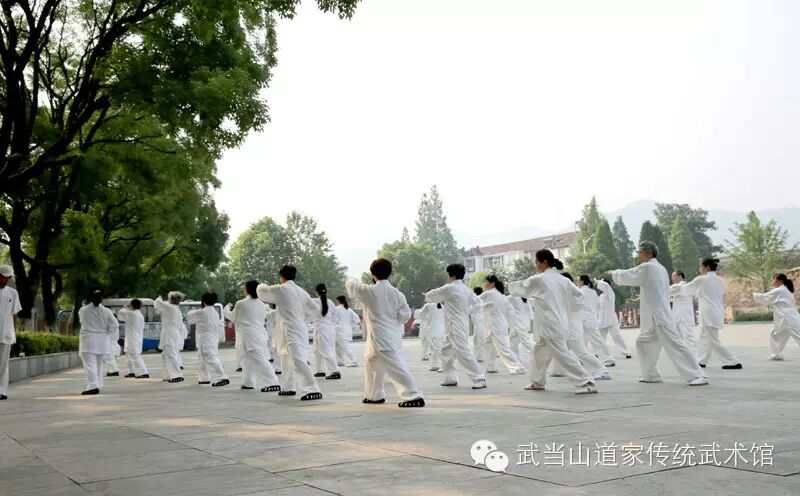 次日清晨,大家来到大气磅礴的玉虚宫练功场,习练太和拳与太极十三势,感受武当氛围。