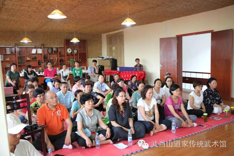 6月6日下午,大家终于来到武当山道家传统武术馆,见到道骨仙风的袁道长。在大家的热情询问下,袁道长给大家讲解道家养生与武术的关系,因为此次学员年均为40多岁以上,袁道长更是结合此年龄段所遇到的健康状况做详细的建议与解答,大家纷纷表示受益匪浅。