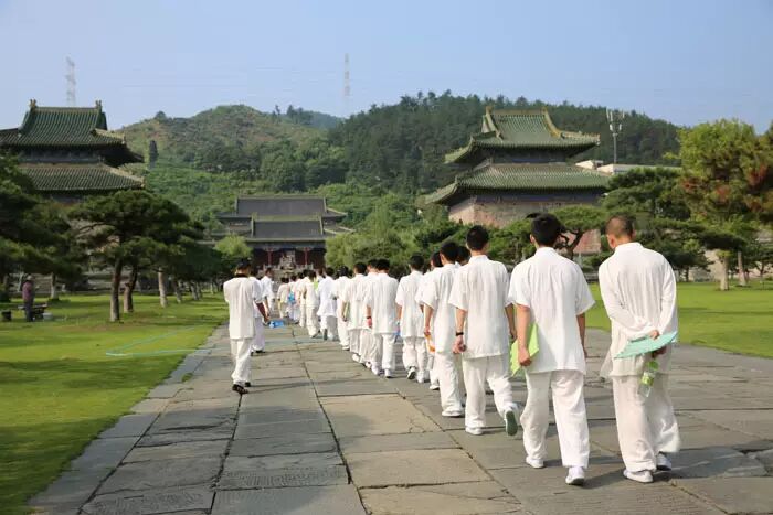 夏季的玉虚宫景色是异常迷人的,满眼的绿意宽广浓郁,令这个皇家道场更加壮观清丽,孩子们排着整齐的队伍迈向练功场地!